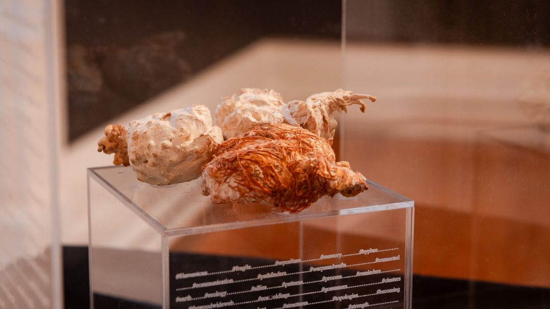 Mehrotra’s site-specific installation celebrates mycelium networks that are the circulatory systems of earth. Found in the soil, mycelia are not only intelligent conduits of exchange within the ecosystems of landscape, but also are potentially revolutionary material of the future, offering a range of sustainable solutions in material manufacture.