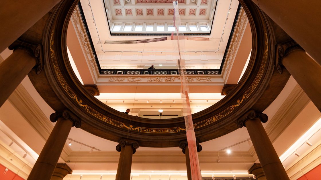 Hannah Robson presents a monumental work that responds to the Harris’s archive of the Courtauld Factory in Preston in the impressive newly opened spaces of the museum.