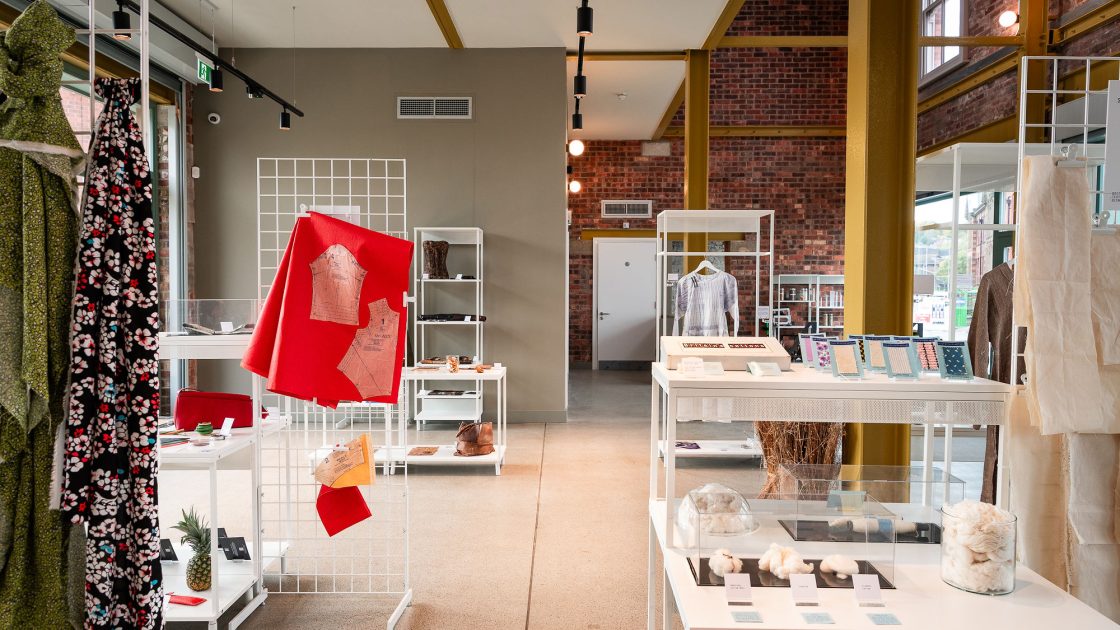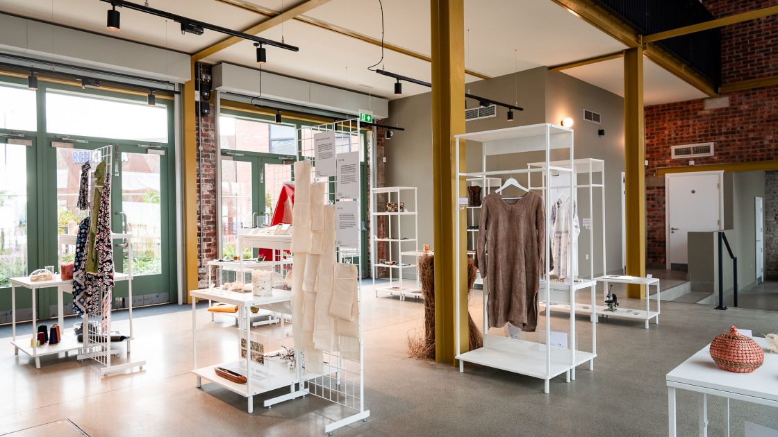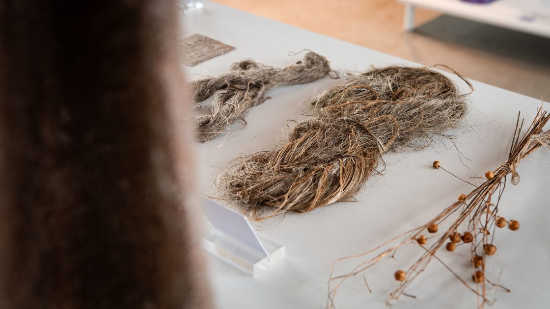 The Materials Library explores the origins of fibres that have long clothed and connected us. Developed through a collaboration between British Textile Biennial and The Making Rooms, it lays the foundation for a future Fabric Lab in Blackburn, envisioned as a space for shared experimentation and making with new materials. From seeds to samples, as well as finished products, the materials on display unfold stories of worldmaking, reflecting a diversity of practices that are simultaneously ancestral and emergent, offering different ways of thinking with and through materials.
